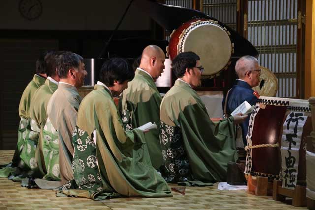 あかりコンサートの開会式では、昨年に引き続き、三条声明会の加勢を得て、「伝統声明」を新潟県内の音楽ファンの前で勤めることができました。このあと着替えてお坊さん酒場に向かったということです。